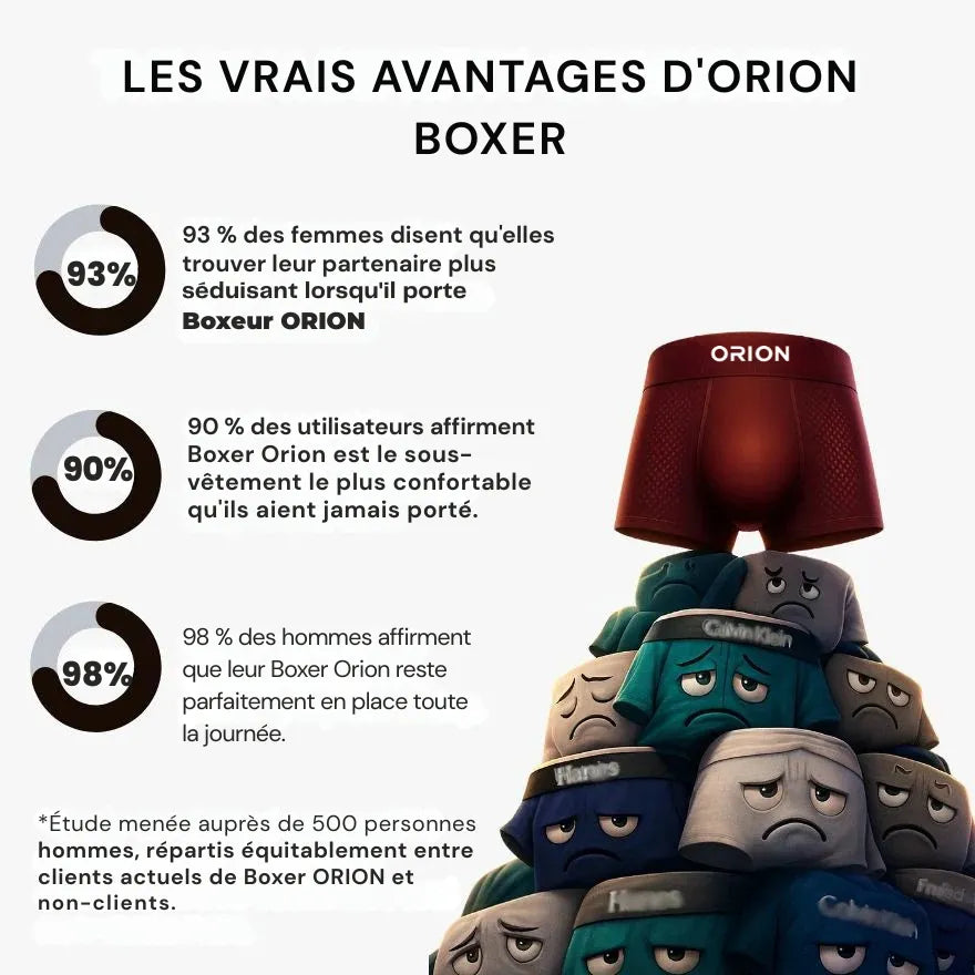 Grâce aux fibres naturelles respirantes, les boxers ORION évacuent l’humidité et limitent les odeurs, même après une journée entière ou un entraînement intense.