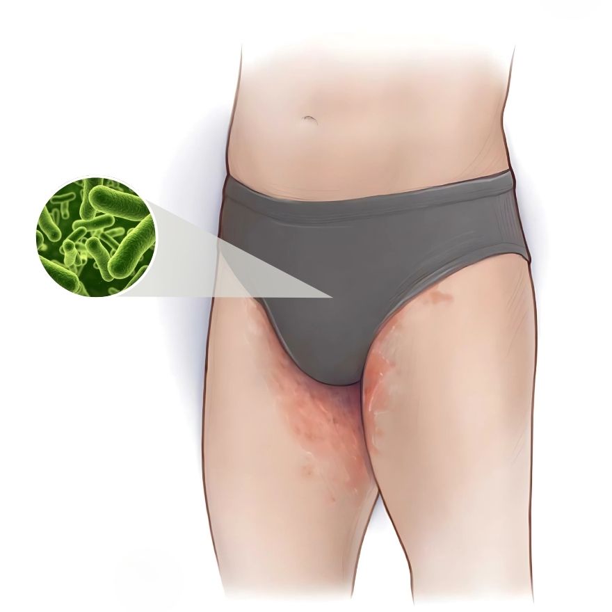 -Infekcie močových ciest (UTI): Spôsobené baktériami, ktoré sa množia v teplých a vlhkých podmienkach. Muži so zlou hygienou alebo tesnou, nepriedušnou bielizňou sú vo vyššom riziku.
